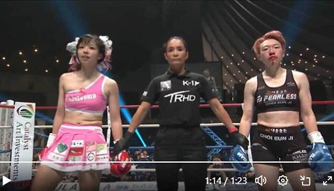 "춘리 같아" 한국인 선수 코피 쏟았다…日 여성 파이터에 안면 킥+강펀치 허용→0-3 완패 "실력 이어 패션까지 압도"
