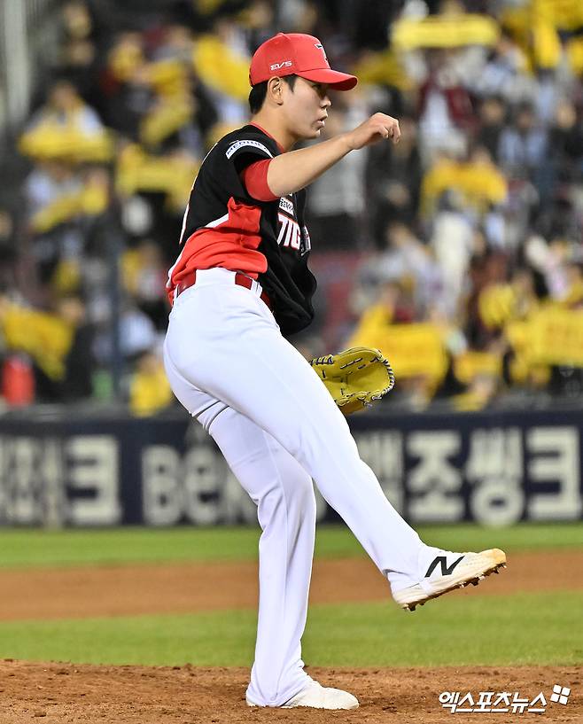 성영탁은 10회말에도 마운드를 책임졌다. 김상수의 삼진, 배정대의 2루수 땅볼, 이강민의 삼진으로 깔끔하게 이닝을 마무리했다. 올 시즌 성영탁이 2이닝 이상을 소화한 건 이번이 처음이다.