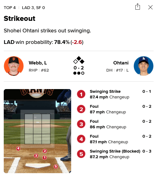 무엇보다도 이날 웹의 유인구에 전혀 대처가 되지 않는 모습을 보이며 선구안 자체가 무너진 것 아니냐는 우려가 나오고 있다. 평소의 오타니답지 않은 양상이기에 컨디션에 문제가 있어보인다는 반응이 나온다.