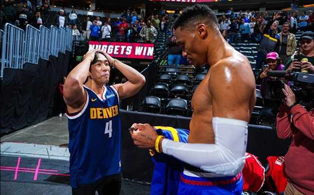 미국 농구 전문 매체 코트사이드 버즈와 스페인 마르카 등 복수 언론에 따르면 웨스트브룩은 6일(한국시간) 미국 콜로라도 덴버에 위치한 볼 아레나에서 열린 새크라멘토전을 마치고 한국 농구팬에게 자기 유니폼을 벗어서 사인한 뒤 선물했다.